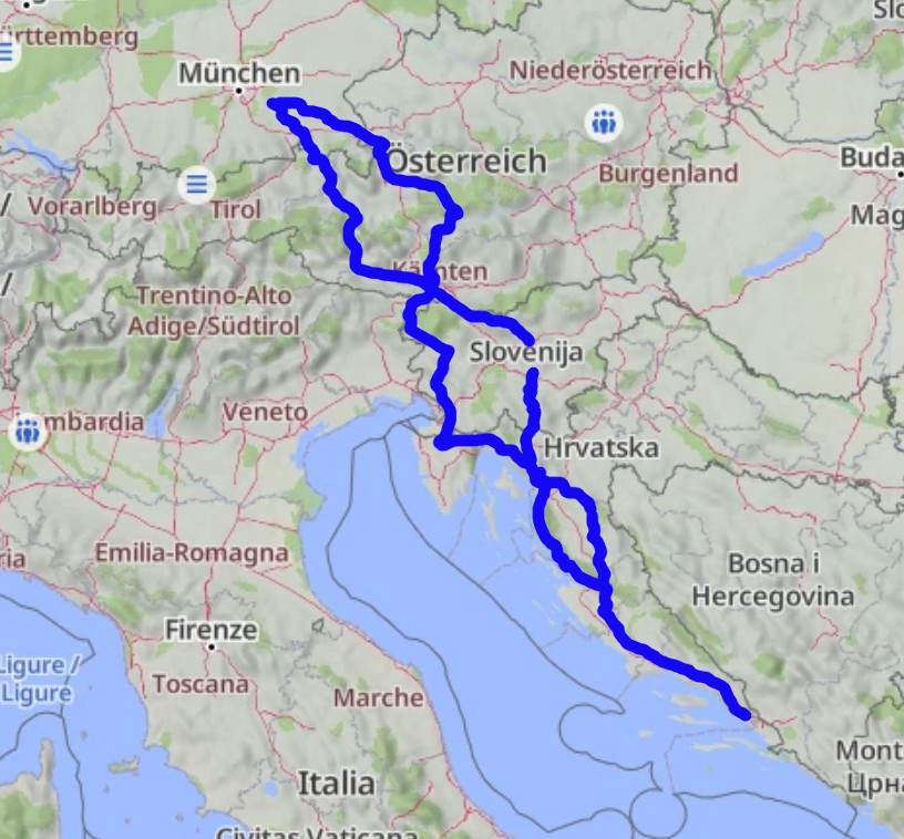 Heute heißt es „Doviđenja“ Kroatien! Wir verlassen die Küste bei Selce und machen uns auf den Weg Richtung Norden. Der Vormittag führt uns noch einmal durch das abwechslungsreiche Hinterland der Kvarner Bucht, bevor wir die Grenze nach Slowenien überqueren. Über kurvige Landstraßen und vorbei an grünen Hügelketten arbeiten wir uns stetig Richtung Alpenhauptkamm vor. Je näher wir der österreichischen Grenze kommen, desto alpiner wird die Kulisse wieder. Nach einer Woche voller Küstenstraßen und mediterranem Flair erreichen wir schließlich unser Etappenziel am Faaker See. Mit dem Blick auf den Mittagskogel und das vertraute Bergpanorama Kärntens lassen wir den Tag entspannt ausklingen. Es ist der perfekte Ort, um noch einmal Kraft für den finalen Ritt am morgigen Tag zu sammeln und die unzähligen Kurven der vergangenen Woche in geselliger Runde Revue passieren zu lassen. Route ca. 250 km